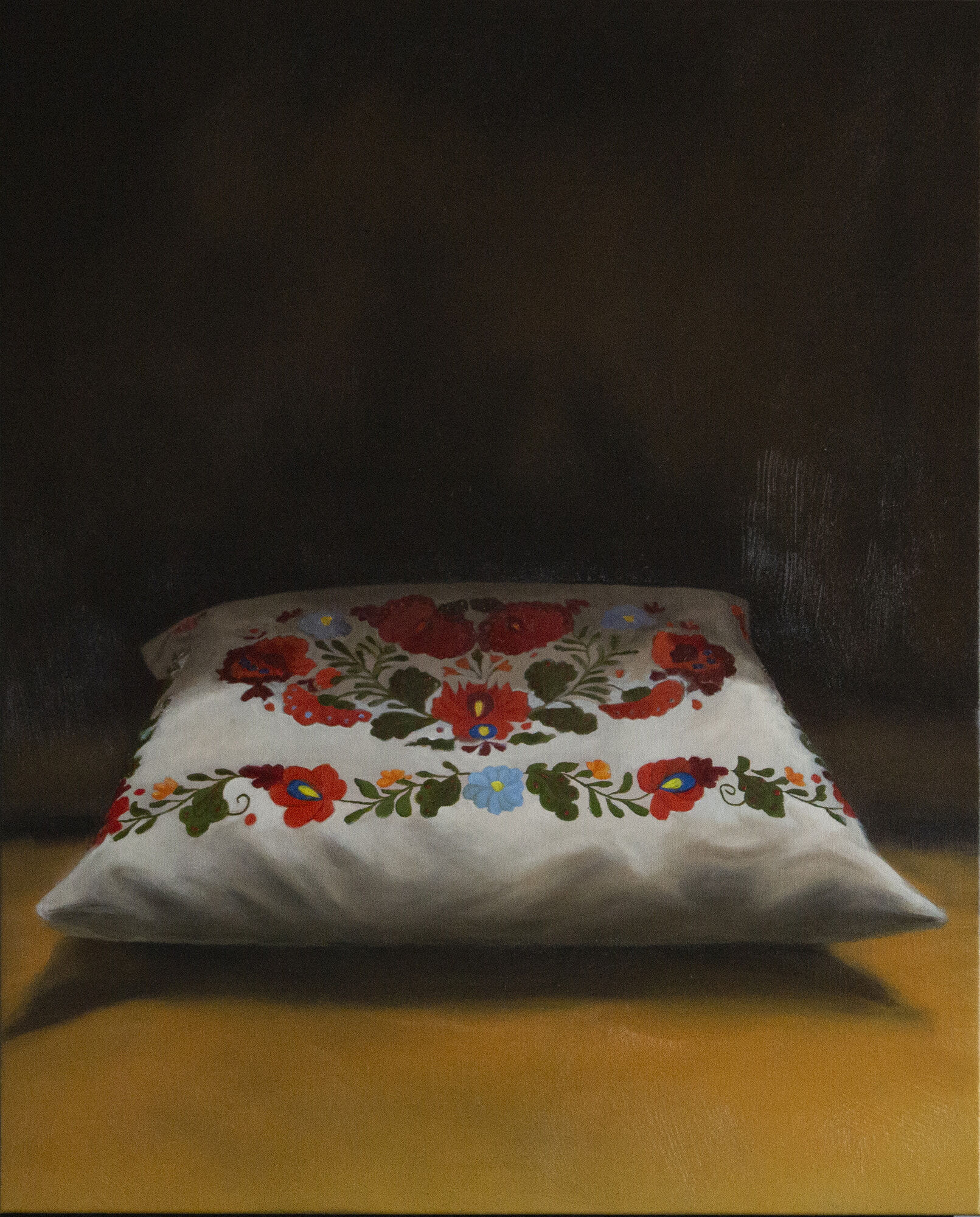 Matyó párna (Matyó cushion) oil on linen painting by artist Ilona Jetmar